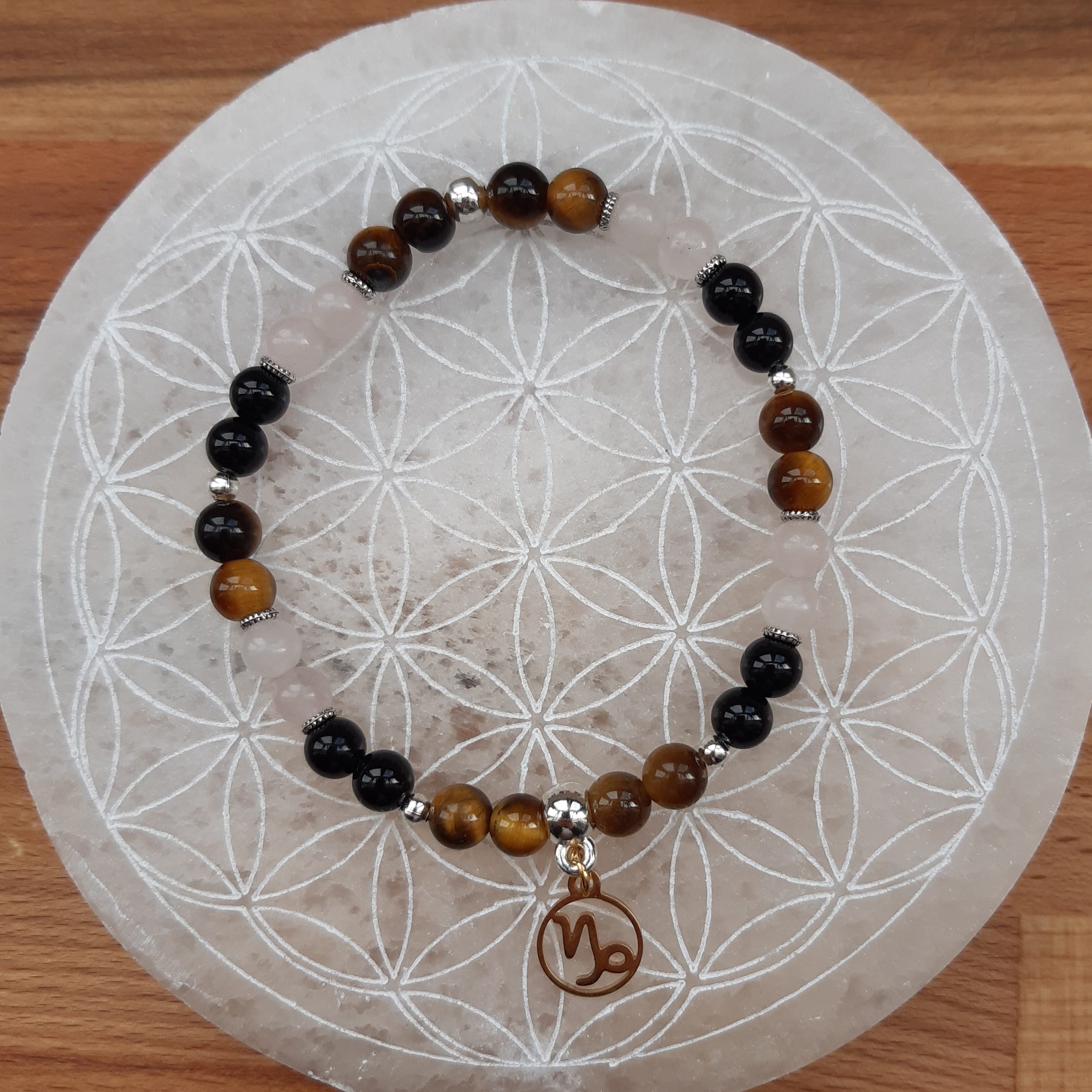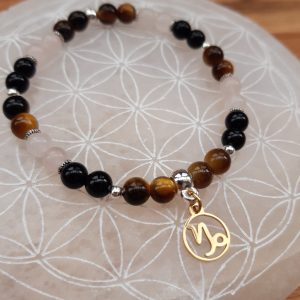 Ce bracelet a été composé à partir de pierres qui correspondent au signe astrologique Capricorne (22.12 – 20.01). Le Capricorne vous assurera une protection contre les énergies négatives, tout en insufflant la vitalité et l’amour dont vous avez besoin.